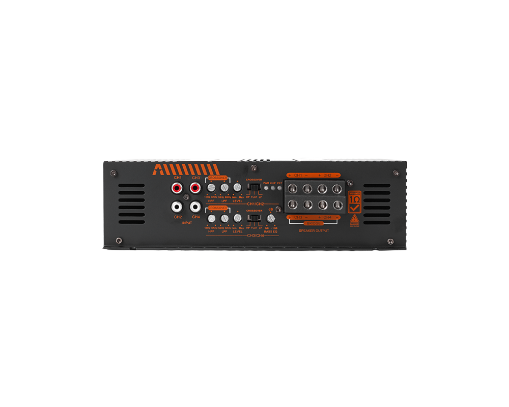 Dankzij de geavanceerde, volledige klasse D-schakeling op een 4-laags printplaat kan elk type luidspreker worden aangesloten: subwoofers, drivers, tweeters of coaxiale luidsprekers. Het hoogdoorlaatfilter is instelbaar tussen 15-6000 Hz en het laagdoorlaatfilter is instelbaar van 50 Hz tot 6000 Hz. Om de basfrequenties (45 Hz) op kanaal 3 en 4 nauwkeurig af te stemmen, is er een 0-12 dB bas-EQ-niveauregeling.