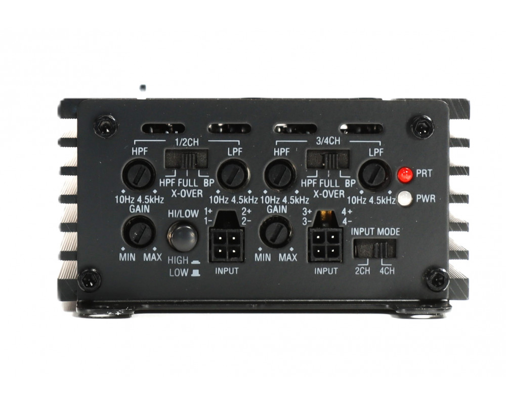 Hoogwaardige versterker met SMD-technologie, variabel en schakelbaar subsonisch filter.