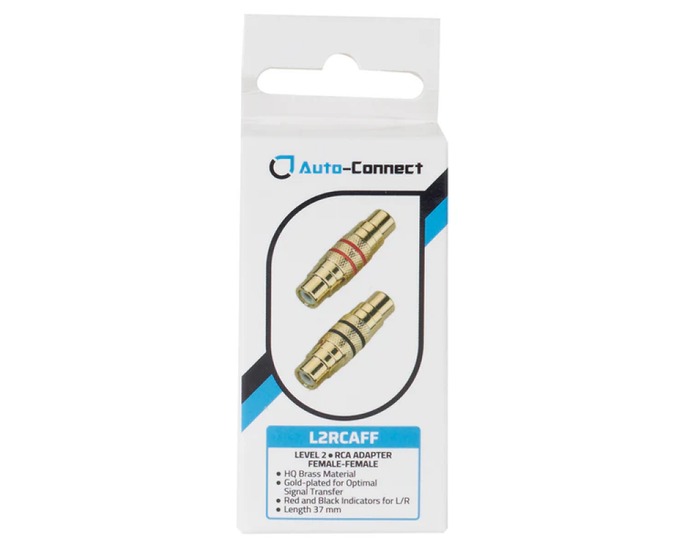 L2RCAFF is een kort paar vrouwelijk-naar-vrouwelijk RCA-adapters dat is ontworpen om RCA-signaalkabels te verlengen of te verbinden zonder signaalverlies. De adapters zijn voorzien van kleurcodes voor het linker- en rechterkanaal en zijn gemaakt van messing.
