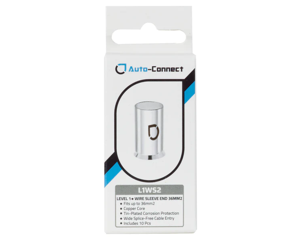L1WS2 is een 10-pack ongeïsoleerde adereindhulzen, ontworpen voor robuuste en nette kabelafwerkingen. Deze adereindhulzen ondersteunen kabels tot 36 mm² (2 AWG) en zorgen voor een schone, consistente afwerking van de geleider tijdens installatie.