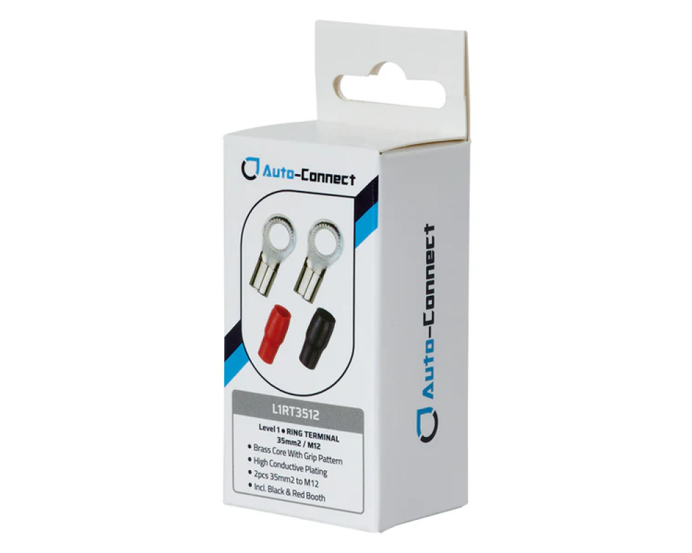 L1RT3512 is een eenvoudig en gemakkelijk te gebruiken paar ringklemmen voor 35 mm² / 2 AWG stroomdraad met een gat van M12-formaat. Deze ringklemmen zijn vertind voor een goede bescherming tegen corrosie en eenvoudig te gebruiken.