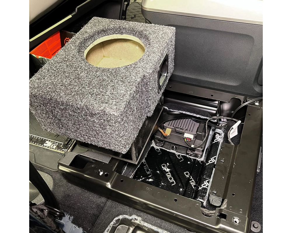 Kist speciaal ontworpen voor verborgen installatie onder de passagiersstoel in 5-zits ID.Buzz 2022 en nieuwer, evenals ID.Buzz Cargo 2-zits. De box is gemaakt van MDF en speciaal ontworpen voor de GAS MAX S1-6D1 6,5" subwoofer (niet inbegrepen). Hij wordt compleet geleverd met aansluitklemmen aan de zijkant en luidsprekerkabel in de box.