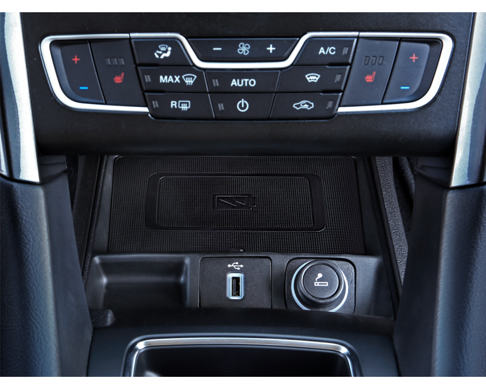 Dit opbergvak ondersteunt het draadloos inductief opladen van smartphones met INBAY®.