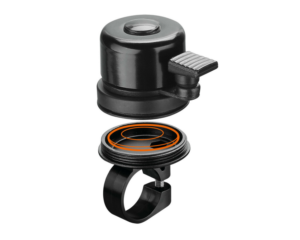 Fietsbel met een compartiment om de Optitag-tracker in te verbergen.