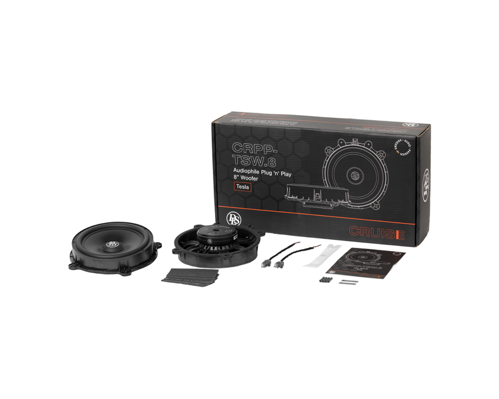 De Cruise Series CRPP-TSW.8 is een op maat gemaakte 8" woofer die speciaal is ontworpen voor de Tesla Model 3 en Model Y, ontwikkeld om de midbass-prestaties in de voorportieren te verbeteren. De installatie is eenvoudig en past precies op de plaats van de fabrieksluidsprekers, waardoor het een ideale verbetering is zonder de originele stereo-installatie te veranderen.