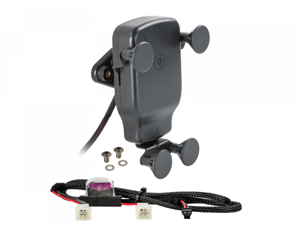 Deze universele smartphonehouder is speciaal ontwikkeld voor houders van het merk RAM® Mounts en ondersteunt het draadloos inductief opladen van smartphones via INBAY®.