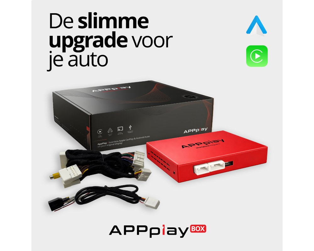APPplay box, onze smartphone-oplossing, ondersteunt draadloze CarPlay- en Android Auto-integratie in uw bestaande multimediasysteem. U kunt de populairste apps van uw telefoon (zoals Spotify, Google Maps, Waze, WhatsApp en meer) gebruiken en alles bedienen via uw originele stuurwiel en MMI, net als bij fabrieksgeïnstalleerde systemen.