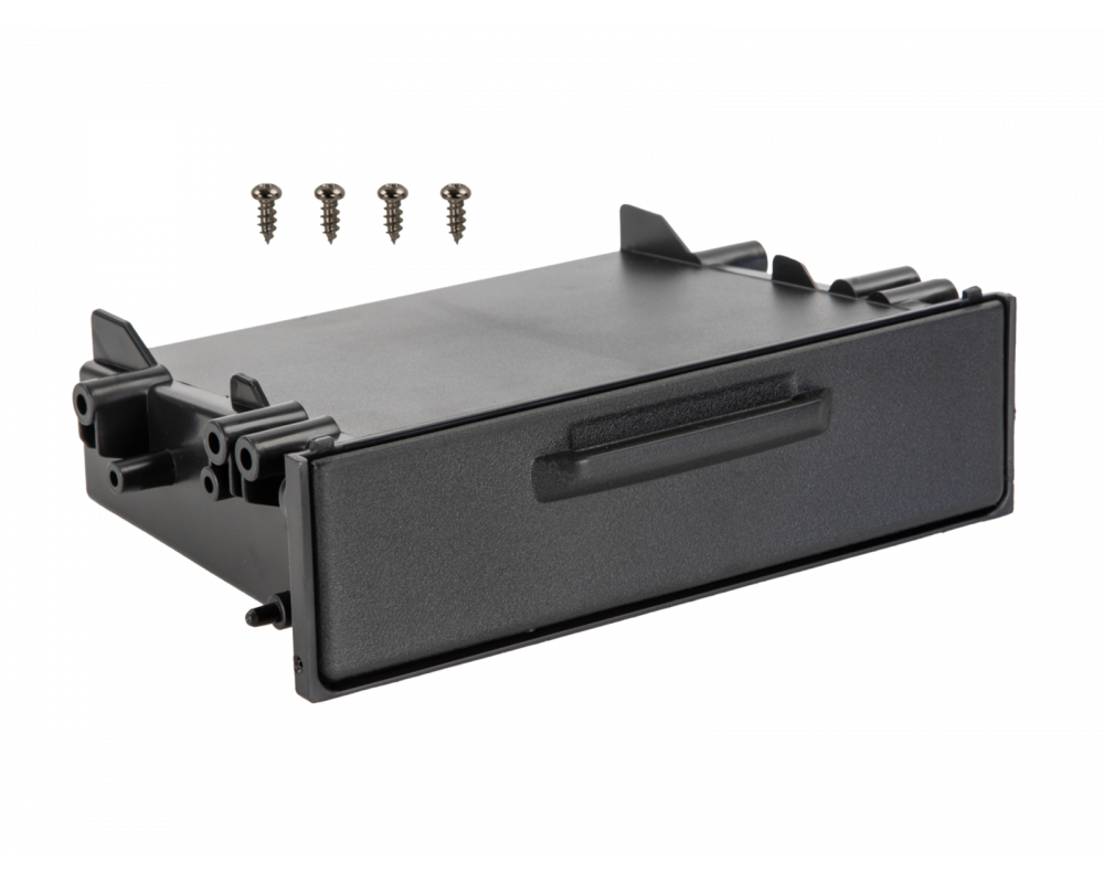 Dit opbergvak is ontworpen voor gebruik met 2-DIN radiofronten en maakt het mogelijk om een ??1-DIN autoradio te installeren. De schroefbevestiging zorgt voor een stevige montage in compatibele fronten; de geïntegreerde klep dekt de opbergruimte af.