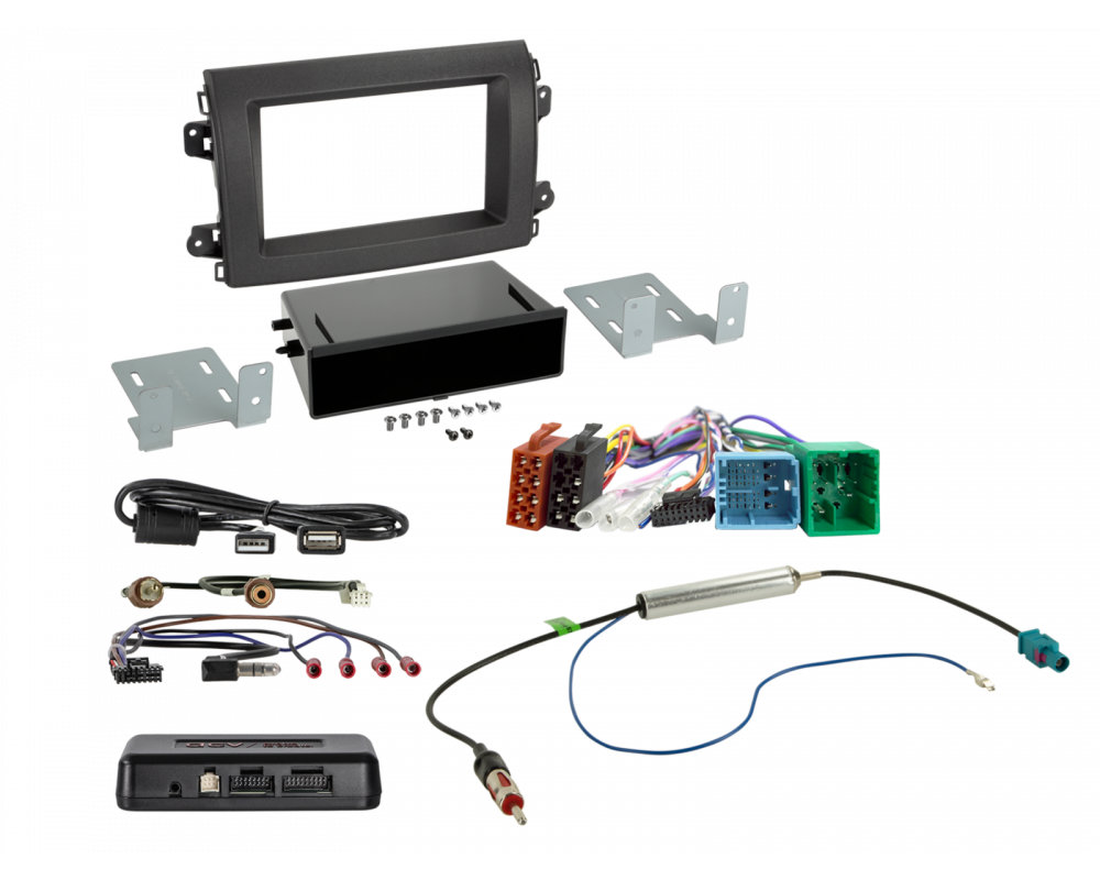 De installatiekits bevatten alle componenten voor het vervangen van een originele head unit.